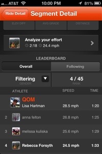 Probably partially because I always felt less motivated, and you lose the benefits of drafting and saving energy in a pace line. However, nowadays I love riding solo. It gives me time to think, and I can do my own kind of workout – long and steady, intervals, whatever. And I think everyone should spend their fair share of time in the wind. Regardless, I know I need to get back on some fast group rides to push myself. Here’s a segment from tonight’s ride on Strava: