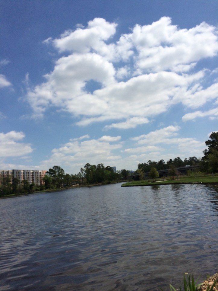 Meanwhile, Texas is trying to persuade me to stay put- after weeks of rain and blah, this week is incredibly beautiful! My view right now (from my work-day walk around the lake):